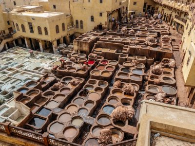 Comencem amb una panoràmica des d’un dels turons que circumden la ciutat, per després visitar les portes en bronze del Palau Reial i ja a peu endinsar-nos a la Medina per visitar Medersas (centre d’estudis alcorànics), tallers als barris dels artesans, dividits per gremis i on destaca l’espectacular barri dels adobers. Fes és molt més: colors, sabors, olors, vida i sensacions que mai no s’obliden. Acabada la visita, tornada a l’hotel.