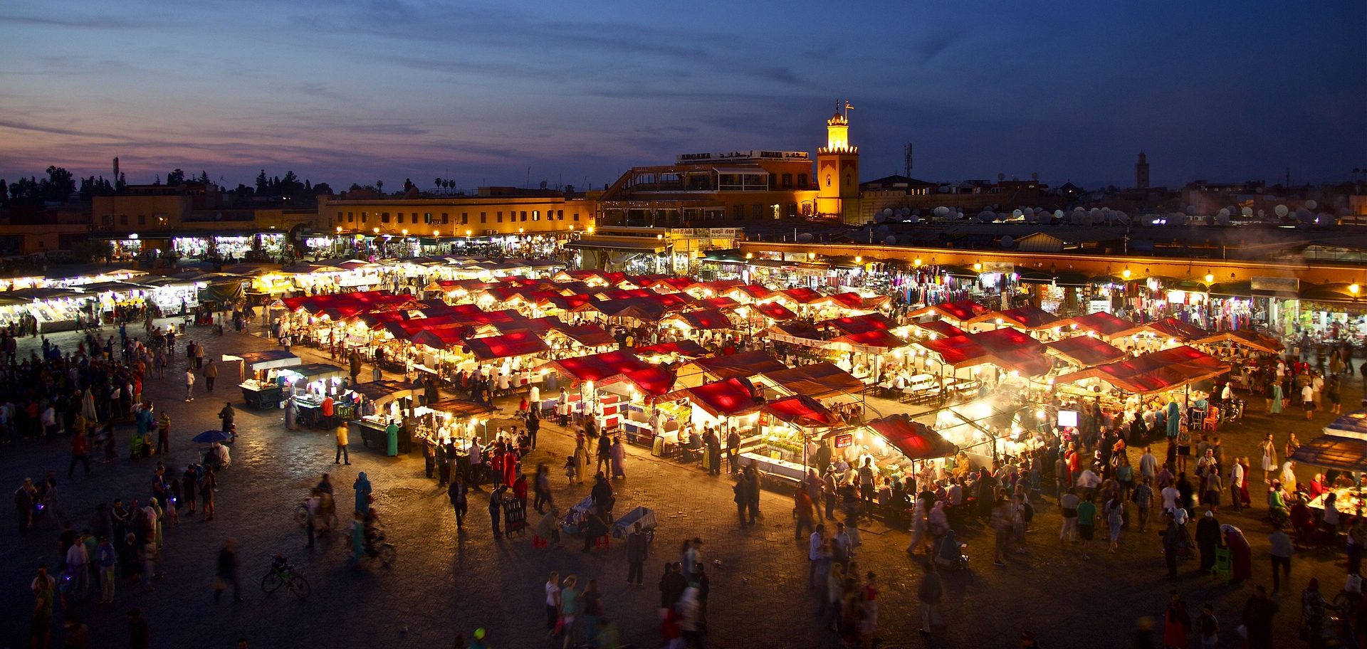 Esmorzar. Al matí efectuarem la visita monumental, començant pel Minarete de la Koutoubia del segle XIII, germana de la Giralda de Sevilla. D’esplèndida harmonia és actualment el far i centre espiritual de Marràqueix. Visita al Palau de la Bahia, residència de l’antic visir i clar exemple de l’edat mitjana musulmana, on destaca la sala d’ambaixadors. Ja a peu ens dirigim a la Plaça Jamaa el Fna, punt neuràlgic de la medina, des d’on surten tots els carrerons i socs que la componen.
